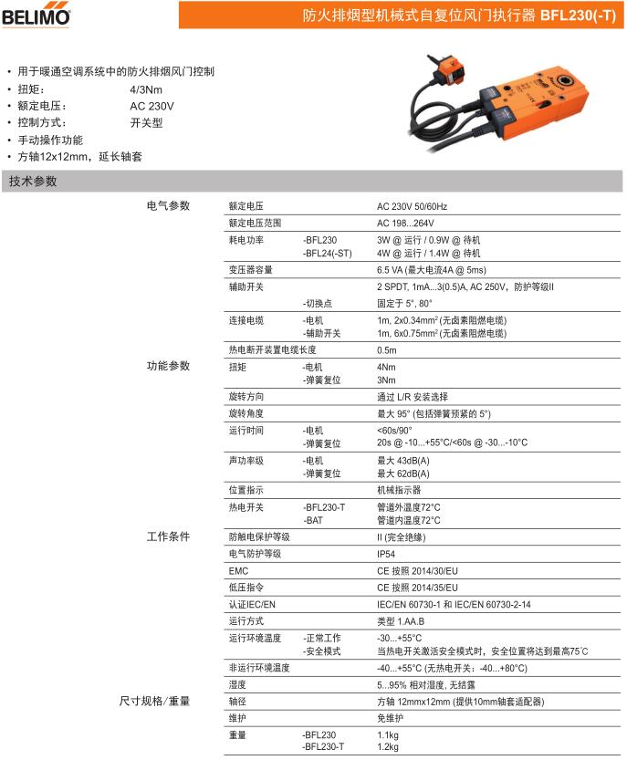 • BFL230防火排煙型機(jī)械式自復(fù)位風(fēng)門執(zhí)行器