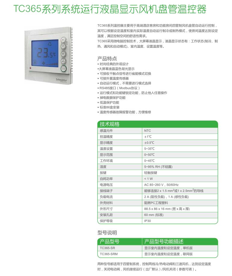 • TC365系列系統運行液晶顯示風機盤管溫控器